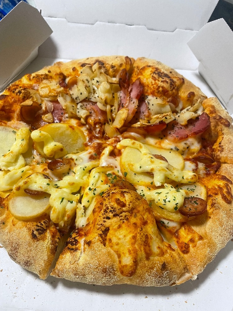 夜中にピザなんて、恐ろしい、太る確定😨😨😨