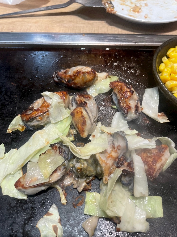 しゃべってたら、牡蠣バターめっちゃ焦げた😨😨😨