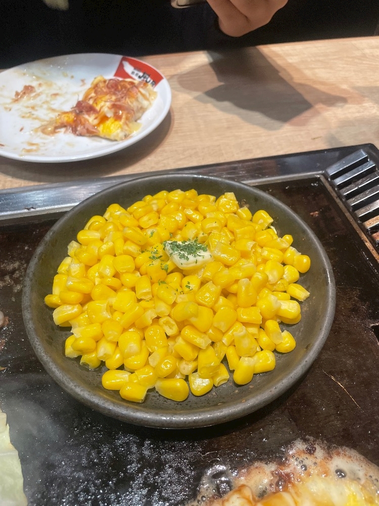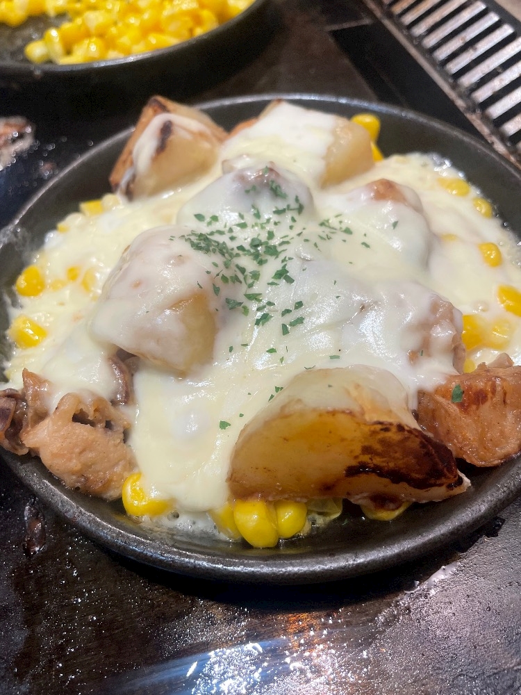 もちチーズとんぺい、コーンバター、帆立とじゃがいもチーズ焼き、そして、一緒にたのんだ、牡蠣のバター醤油焼き😋😋😋