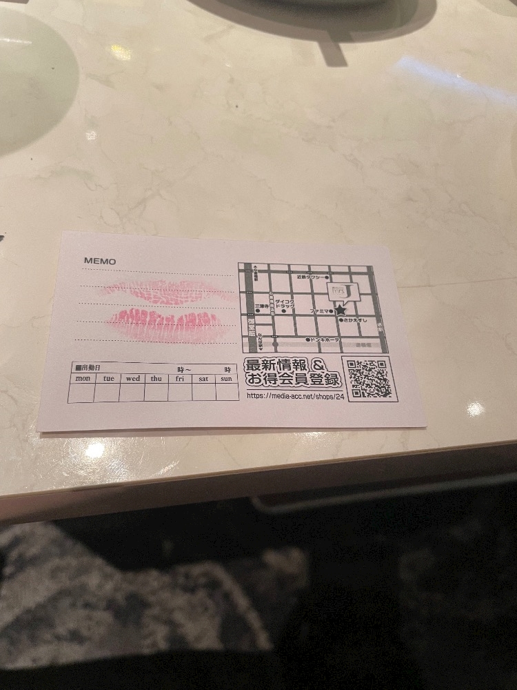 ふたりとも、お客様被ってましたんですが、菜々子さんが、グラスの上に名刺置いてました、、、