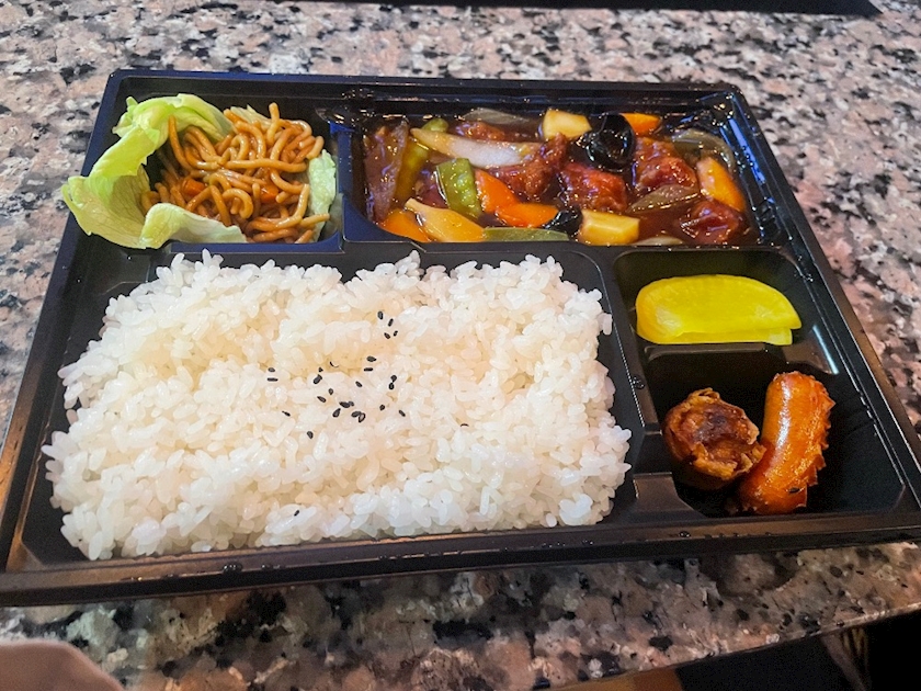 お腹すいてたので、酢豚定食を出前してもらい、食べましたよ😋😋😋