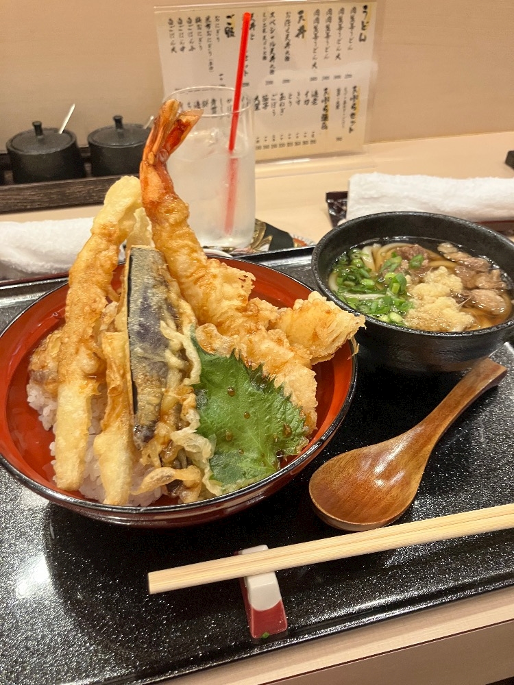めっちゃお腹すいてたから天丼うどんセット!いつもこんなに食べれんけど調子よかったのか普通に食べきれちゃった!😋