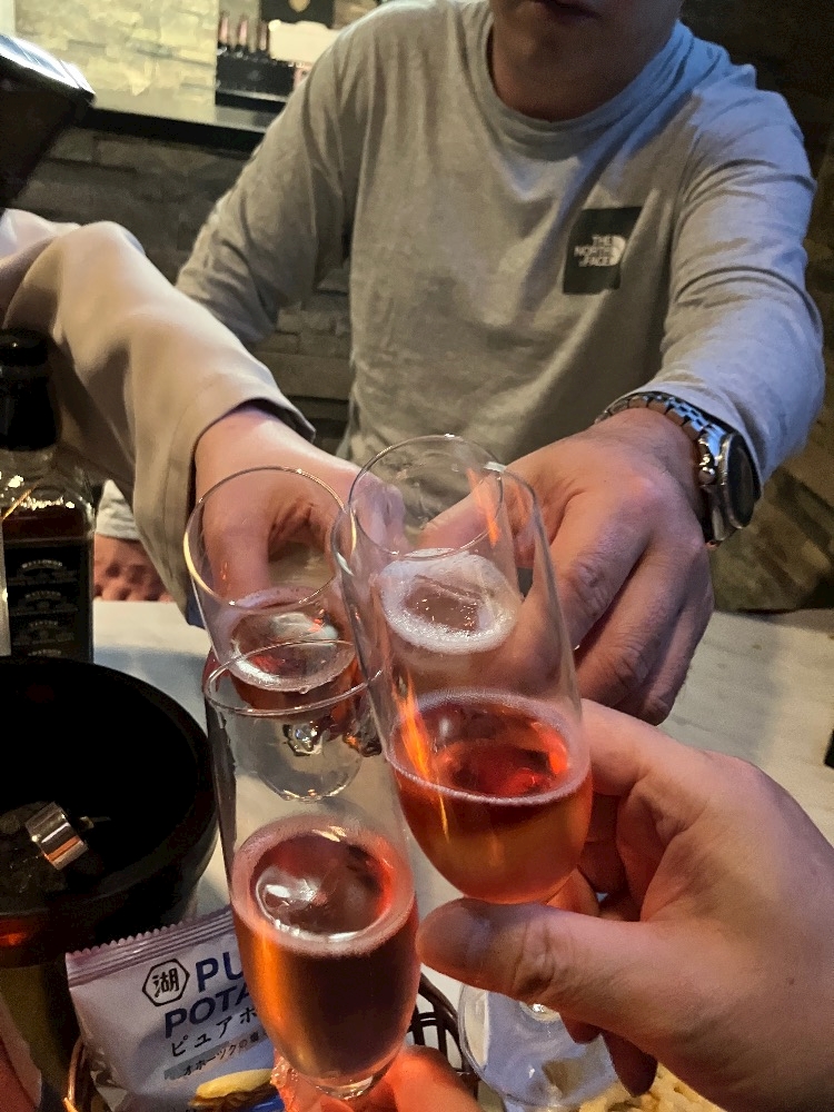 ⭐️そして久しぶりのU様♡酒豪N様と相席からのキラキラシャンパン一緒に乾杯🥂そしてさらにU様からもう一本😊💓