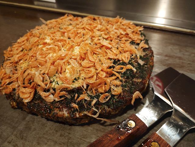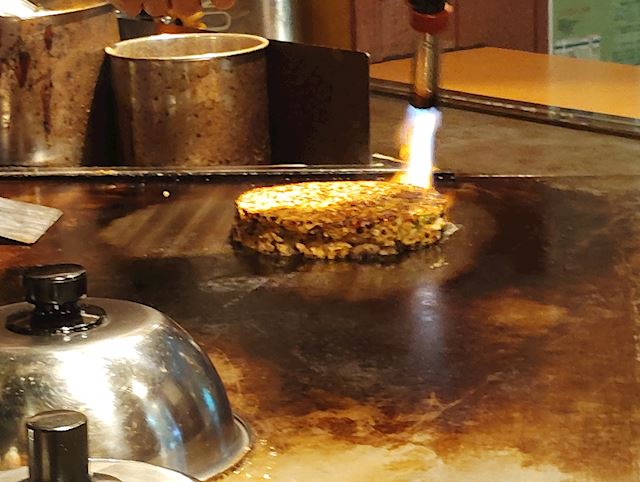 お好み焼き屋さんに連れて行ってもらいました(´▽`)ノバーナーとかするの初めて🎵