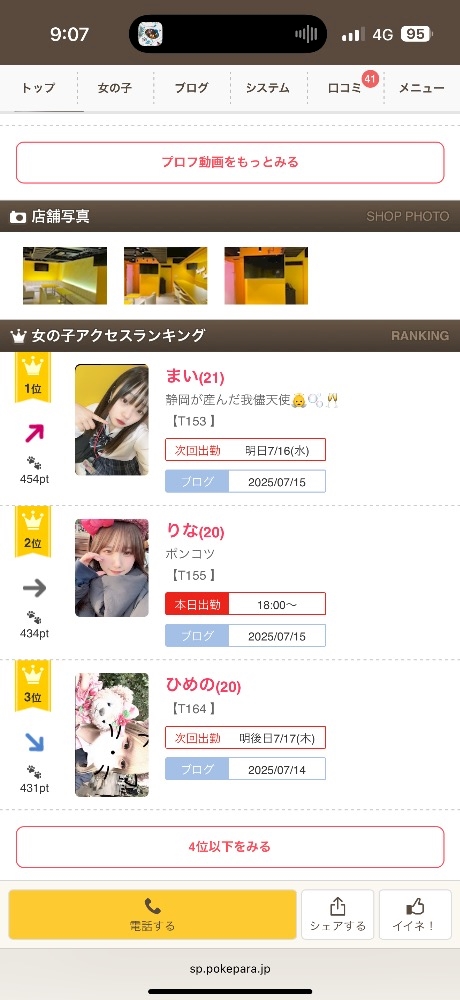 本日の出勤キャストはこちら