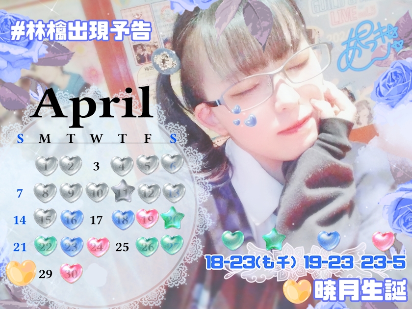 4月後半出勤予定🌼.* - 暁月 林檎 - アニソンバーギルド大阪店 - ミナミのコンカフェ