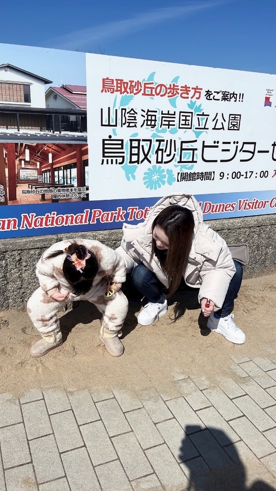 鳥取砂丘の看板の前で撮ろって言ってくれたのに