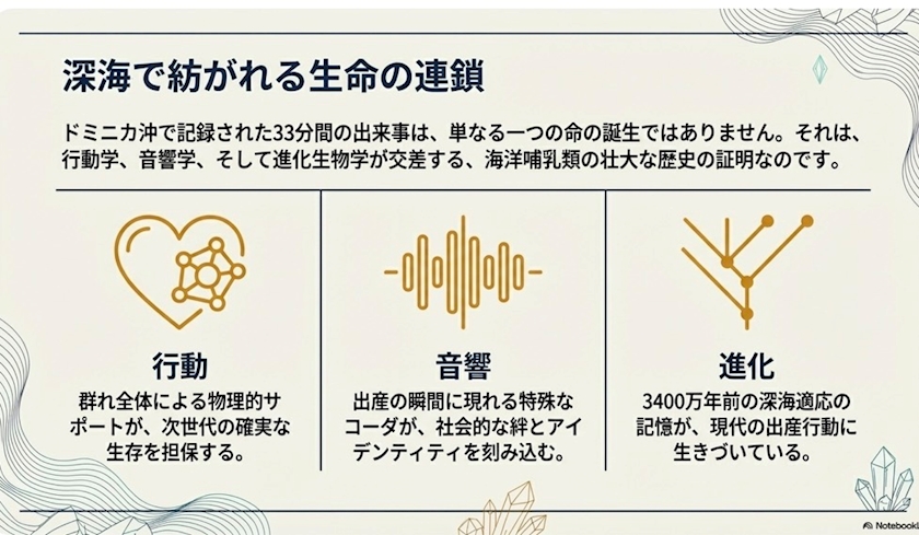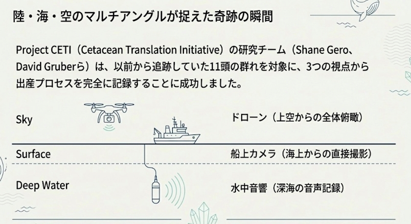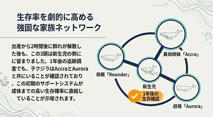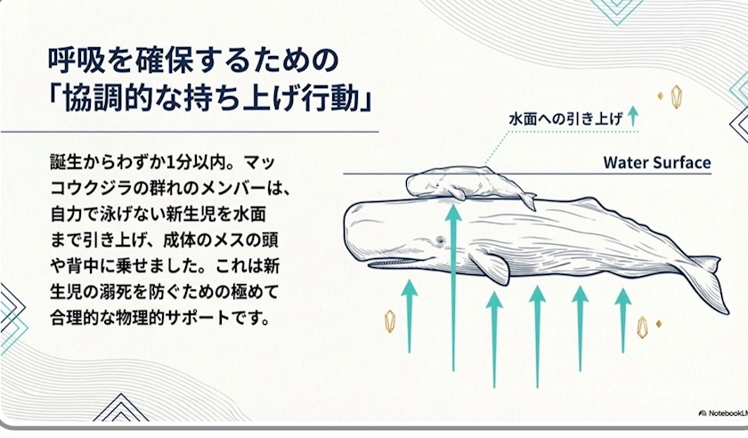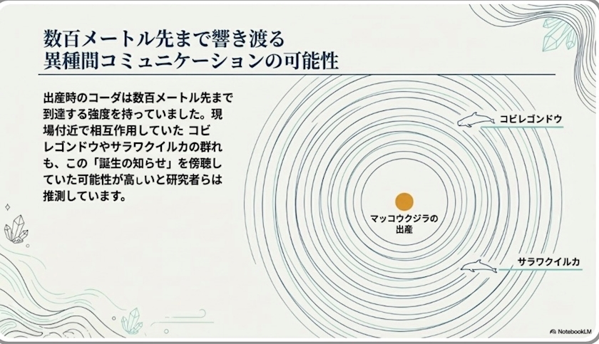 鯨はお母さんが誕生の知らせをして数百メートル先まで