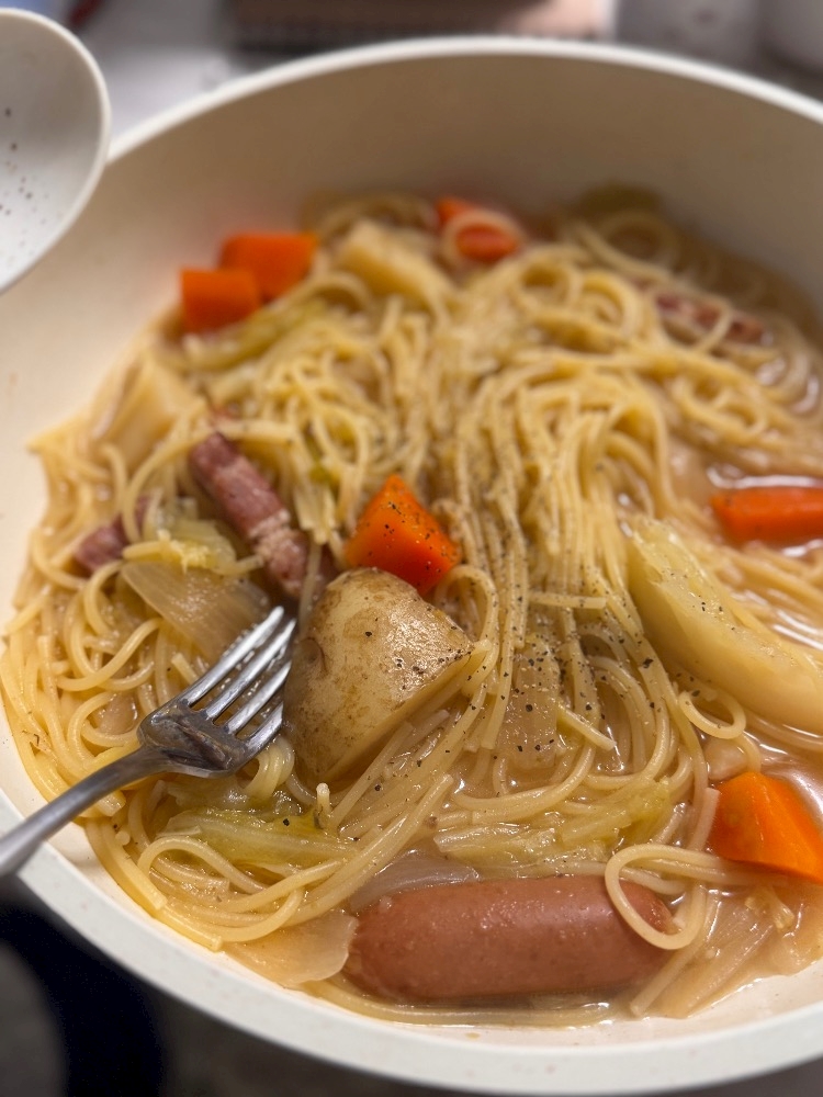 昨日のポトフをスープパスタアレンジしてみた🍝