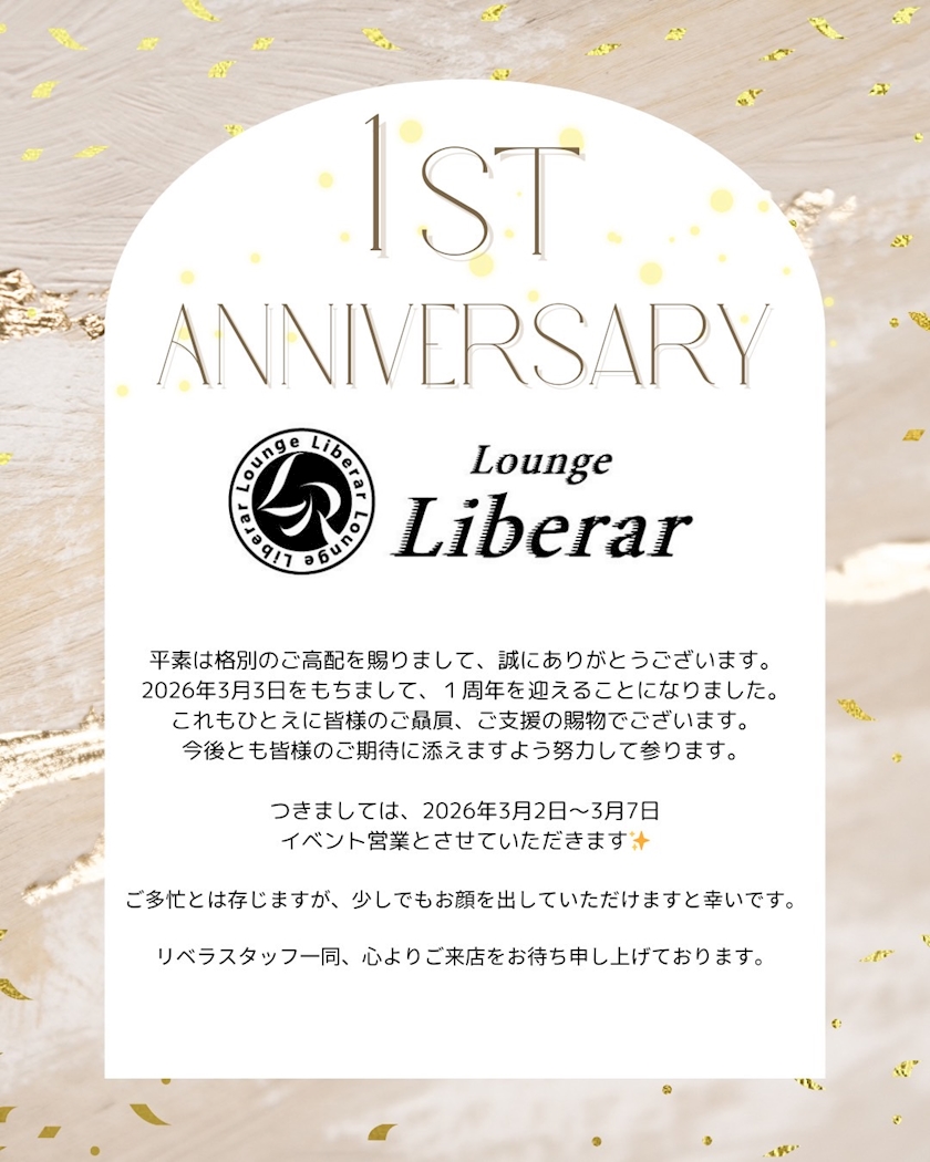 本日3/3はリベラがオープンしてちょうど1年!!!!