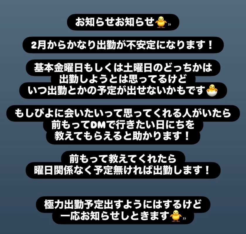 2月からぴよ出勤がかなり不安定になります!
