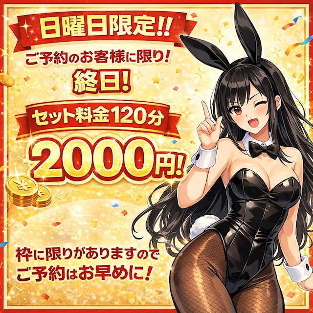 日曜日限定!!セット料金120分2000円!!