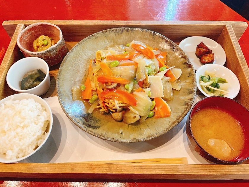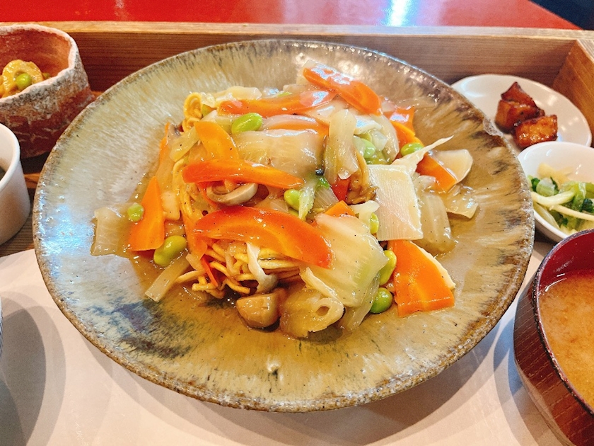 八宝あんかけのかた焼きそば定食に❤️