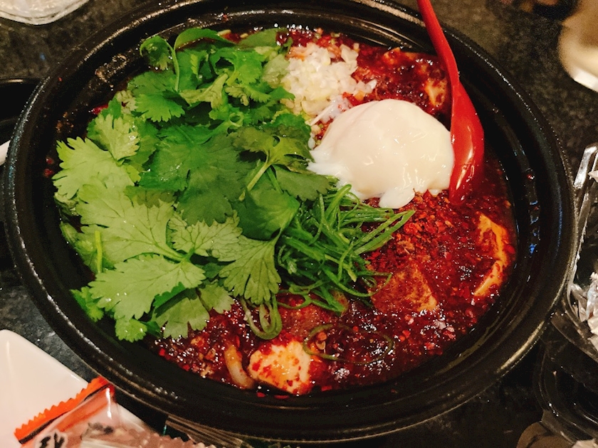 薬膳麻婆麺に、追いパクチーして