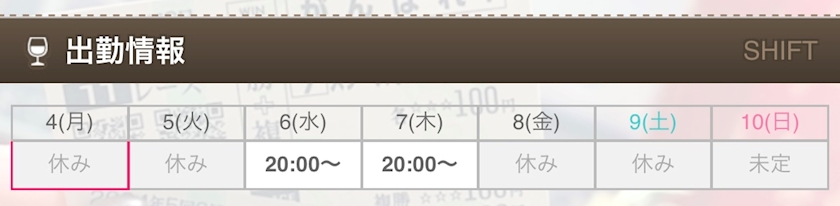 今週のシフトは少なめ🔔