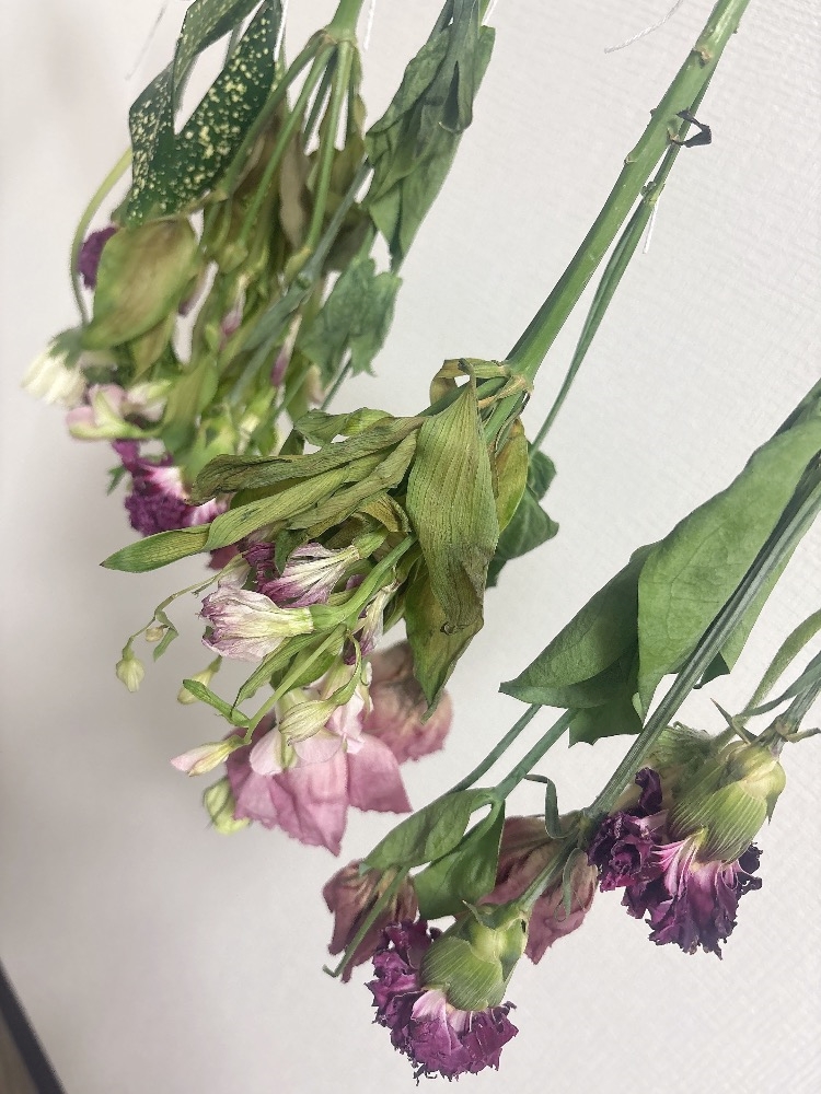 枯れちゃうの勿体無くて、、ドライフラワーに挑戦してます💐