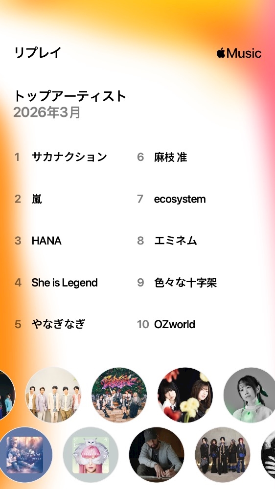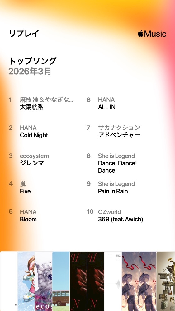HANAとサカナクションはいいゾと嵐終了で一生悲しいのとヘブバン(SheisLegend)はいいぞといったところです