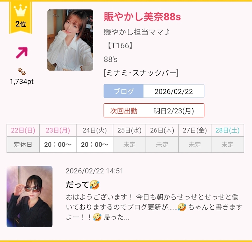 難波心斎橋スナック部門2位まで昇りました✨
