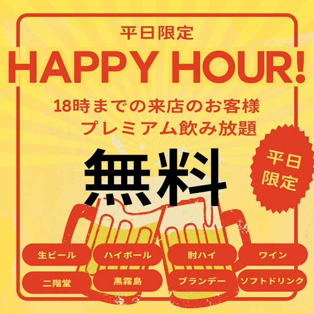 🌞【平日限定ハッピーアワー】🌞