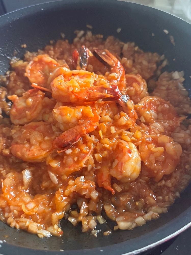 エビチリと八宝菜作ってました♪
