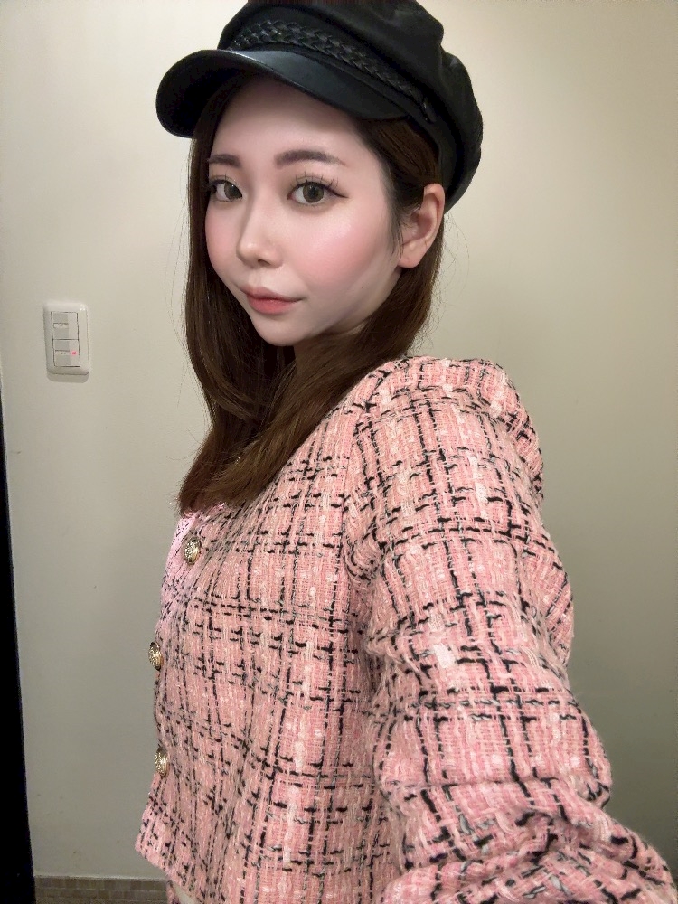 このピンクのツイードのセットアップ