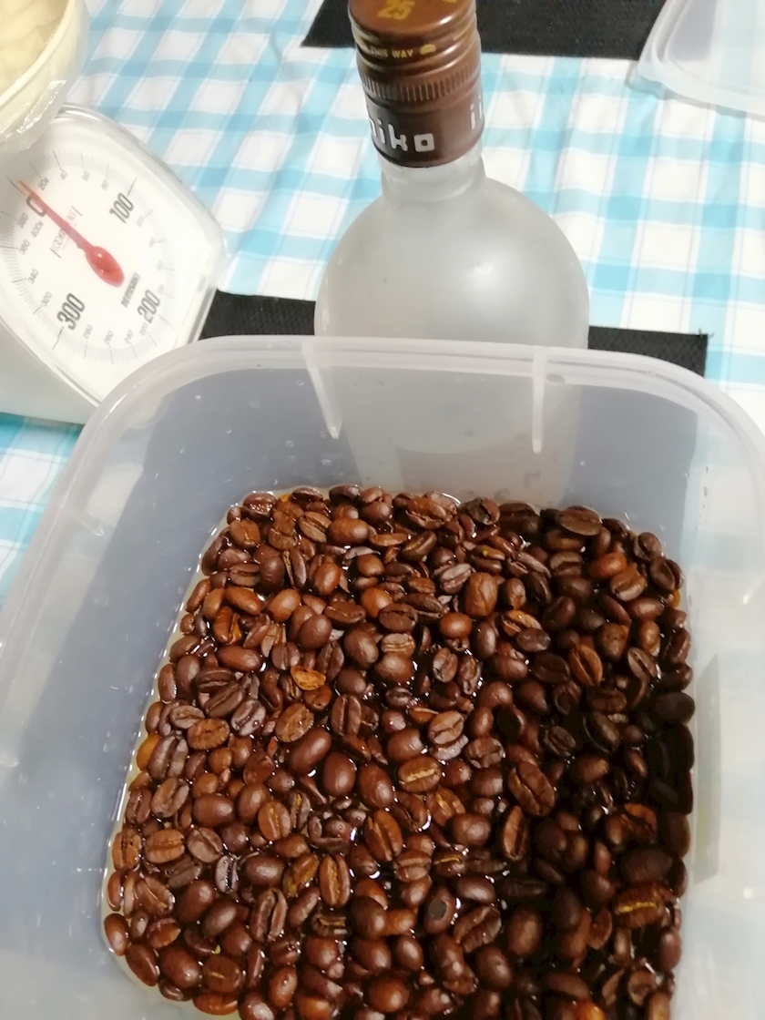 ご予約のコーヒー焼酎しこみましたよ。