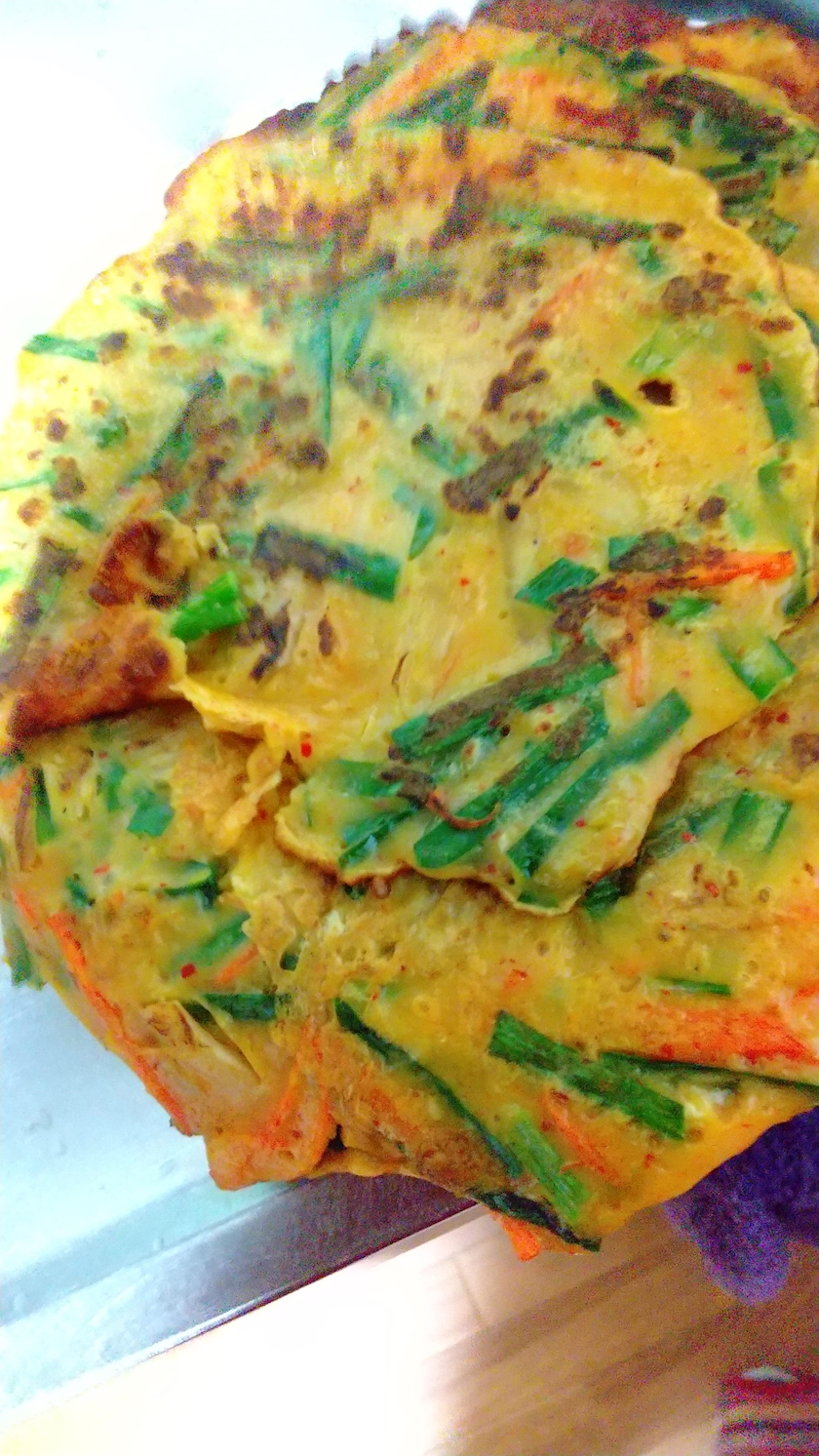 キムチ入りチヂミ作ってまーす。