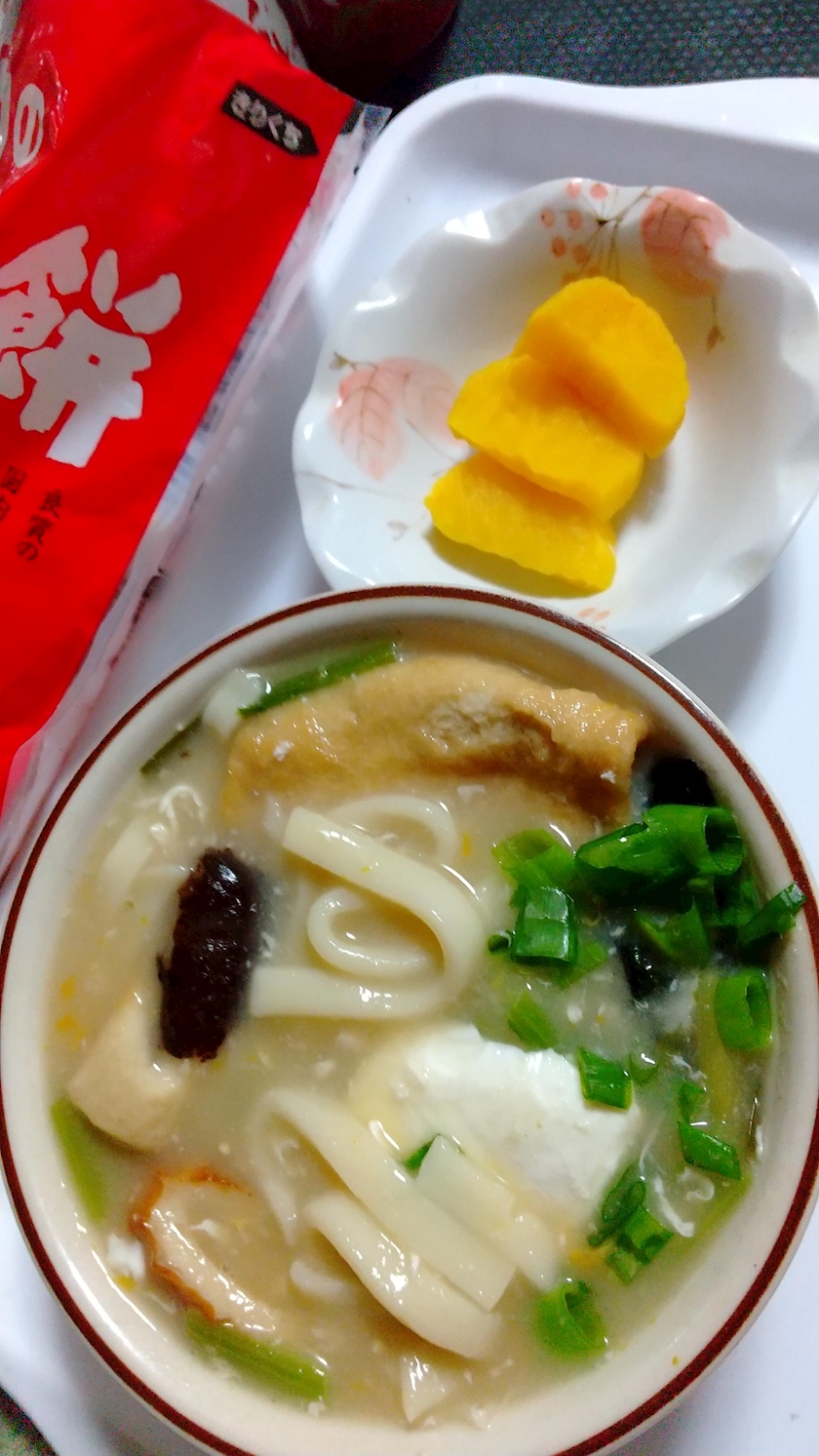 今日はとても寒いから鍋焼きうどん