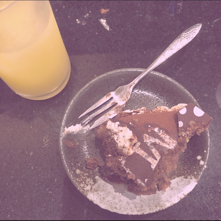 チョコレートケーキとマンゴーカルピス🍽𓈒𓂂𓏸