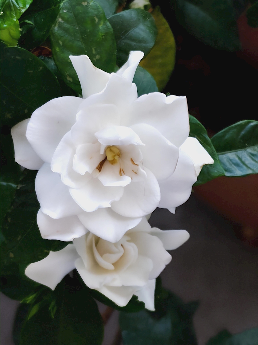 家のベランダのクチナシ花満開で香りが風に乗って家の中に❕あま~い香りが何とも言えないです