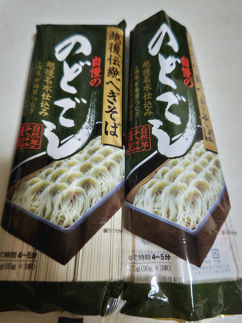 私新潟のへぎ蕎麦が大好きでお取り寄せしてます😋湯がいて時間がたっても蕎麦が引っ掛かり無いのが好きなんです