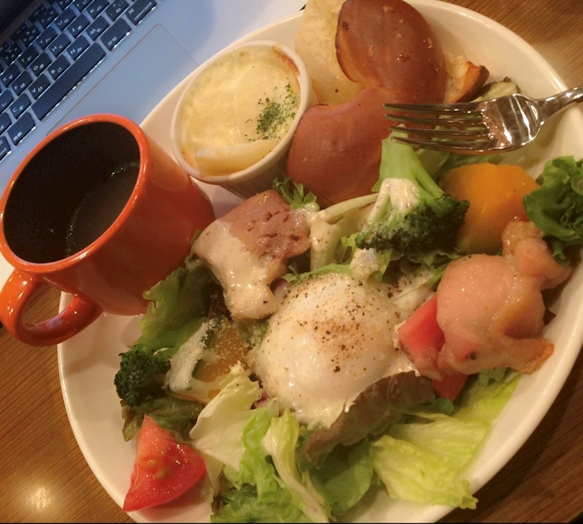 パソコンを目の前にお昼食べて🍴