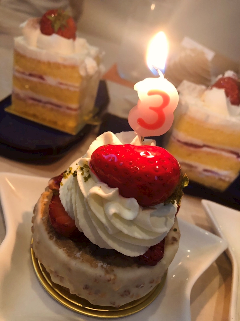 その後いつもの仲良し常連さんが、三周年のお祝いケーキとともに来てくださいました。