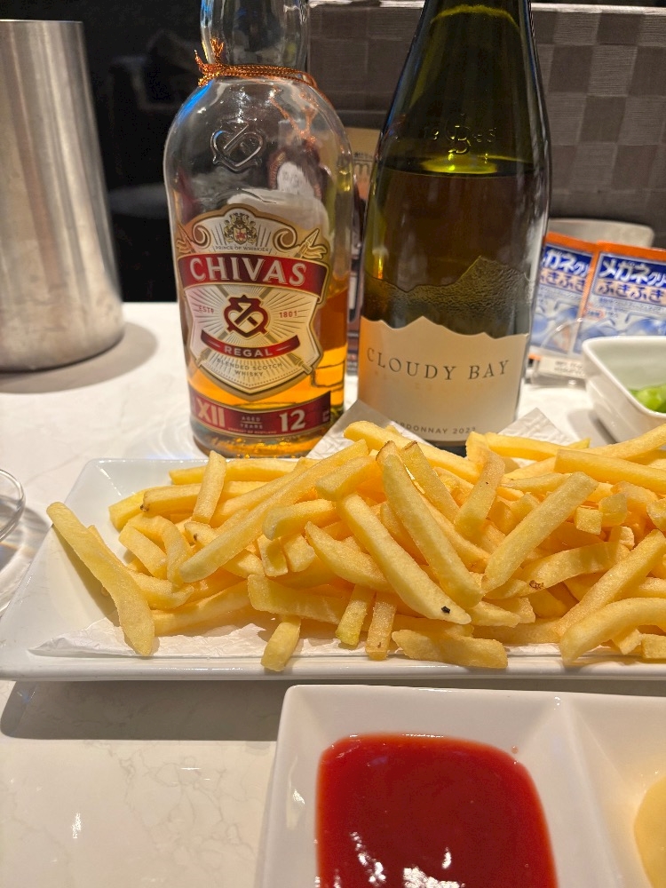 安定のポテトとお誕生日お祝いの白ワイン♡