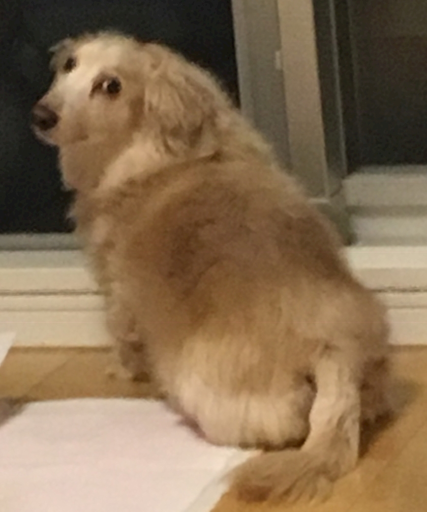 MAXデブりすぎた彼。犬種なに?てかんじ。