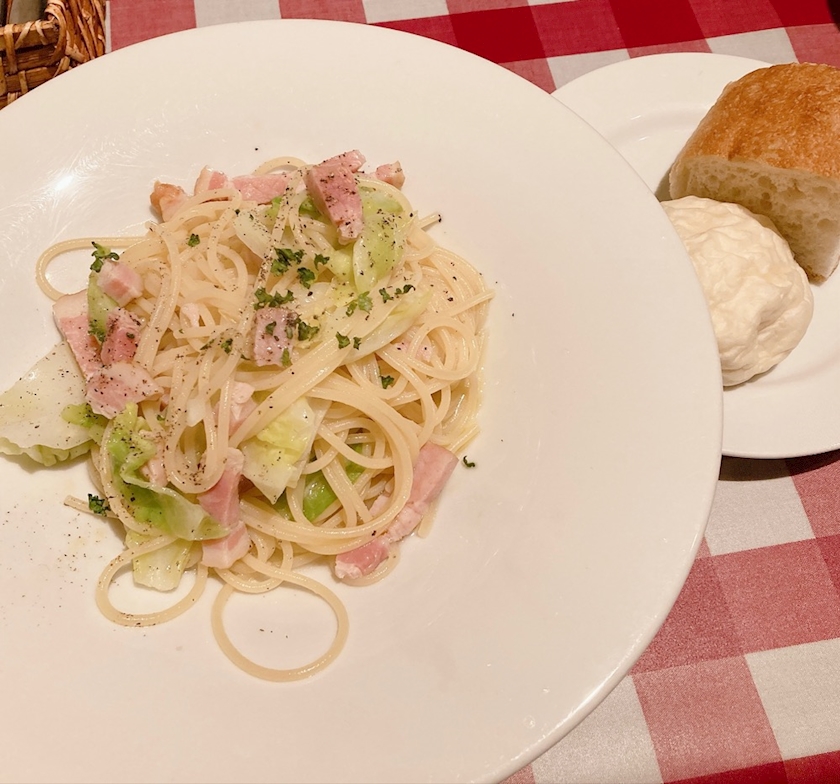 春キャベツとベーコンのオイルパスタ