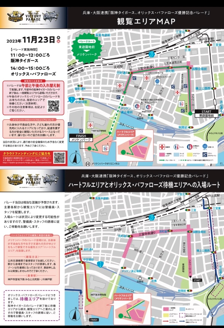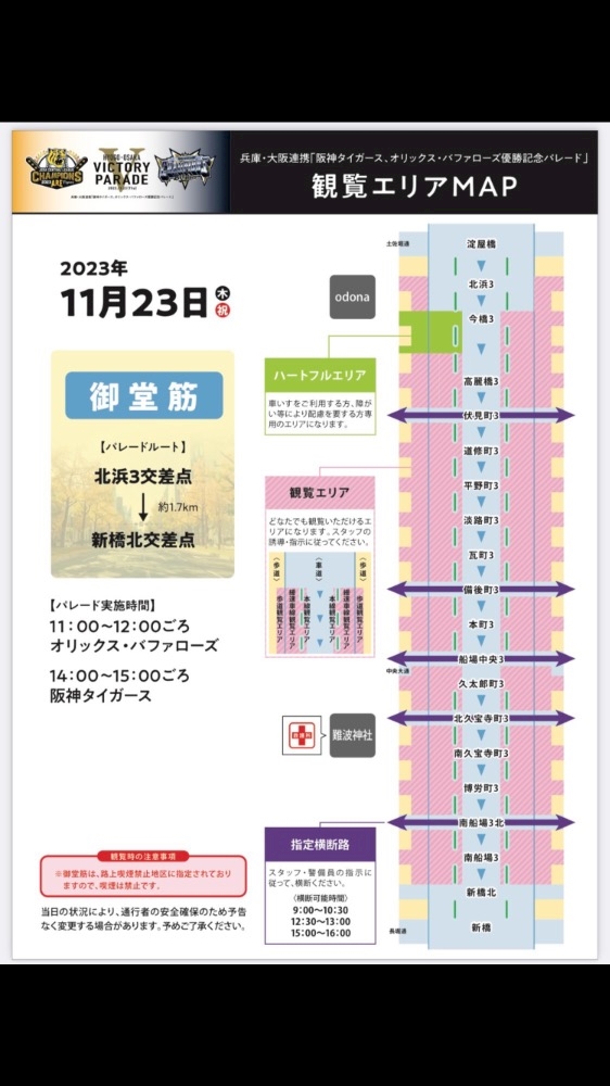 阪神、オリックスの優勝パレードの日
