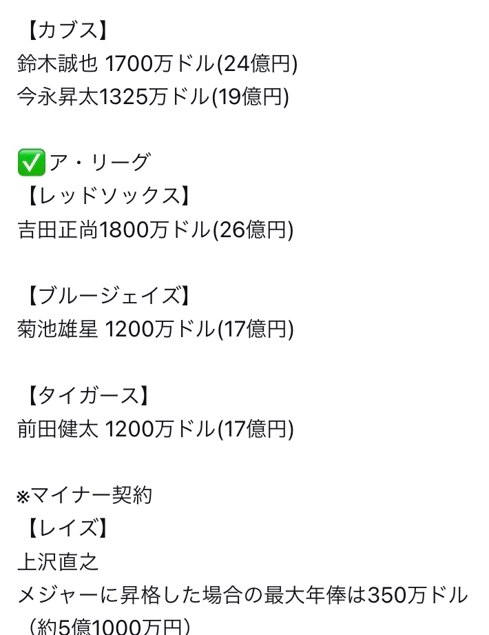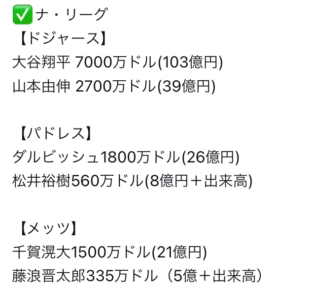 ⚾️メジャーでは、