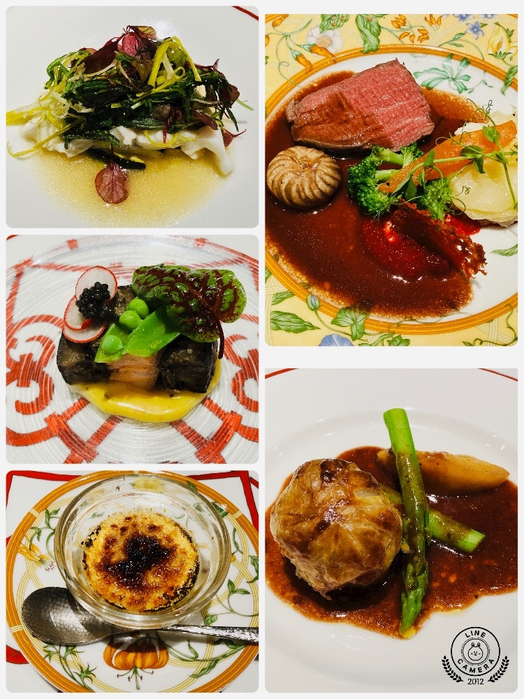 左上の↖️スズキの白ワイン蒸しにさっぱりレモン🍋ソースがかかってるのが