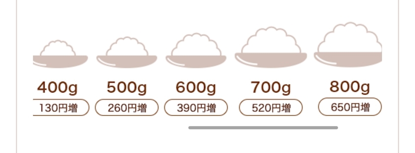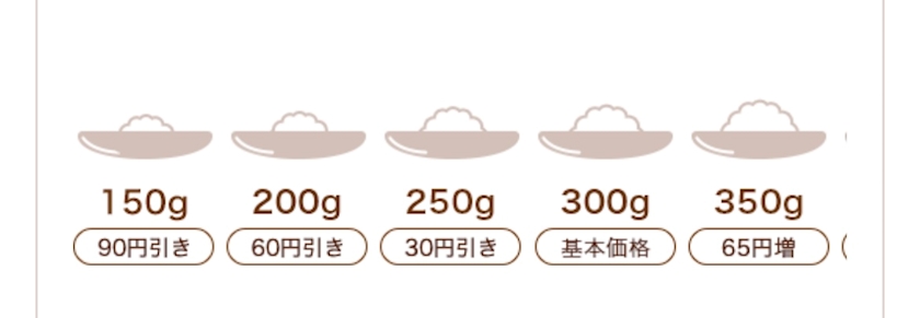 ご飯は通常が300gになってたので、