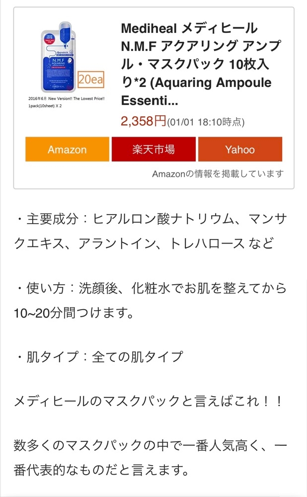 エステサロンでも使われてるパックなので効果はなかなかです✨がちょっとお値段が高いので週3回以上するにはちょっとなぁと思い去年色々試してました💕