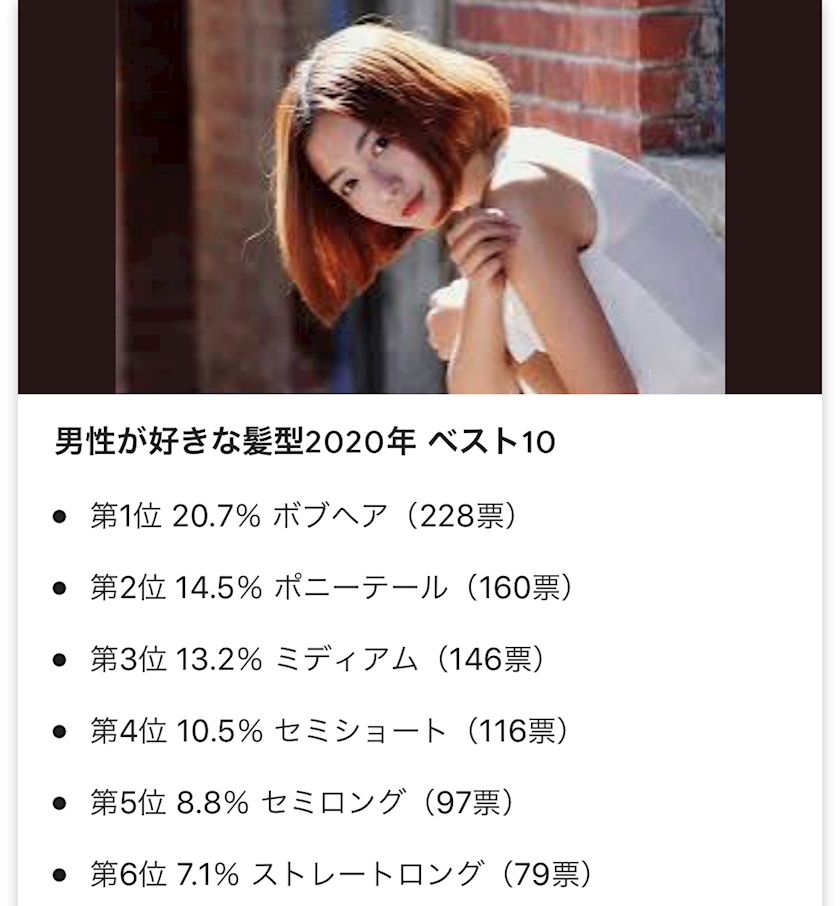 雑誌とかにもよるしアンケート答えてる年齢にもよるけど絶対1位はロングやと思うけどね💎✨✨