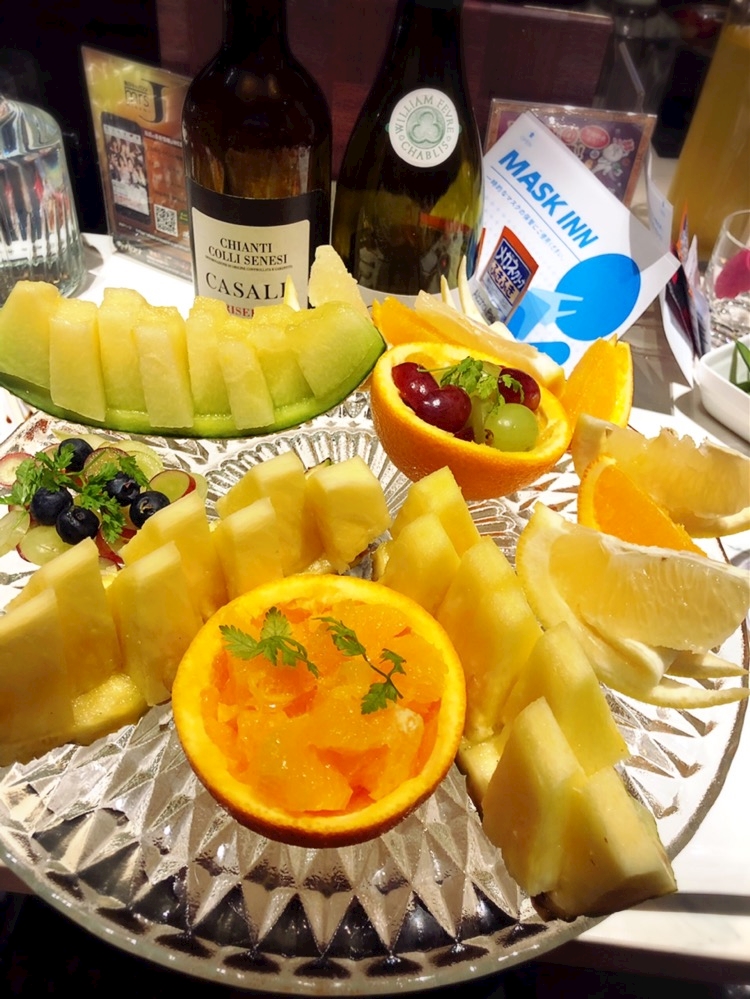 カラオケルームに戻ったら何故かフルーツ盛りが🍊🍋🍐🍏🍌🍑🍇