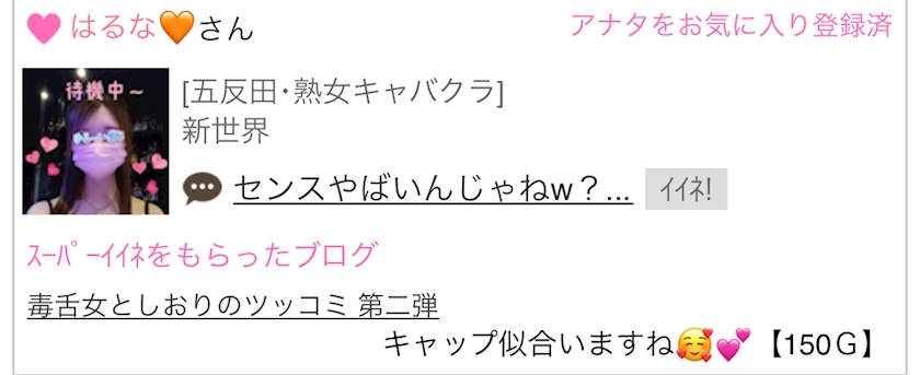 ポケパラ会員様からのLINE - __しおり💙✩ - 大阪 熟女キャバクラ・Mrs.J ミナミ