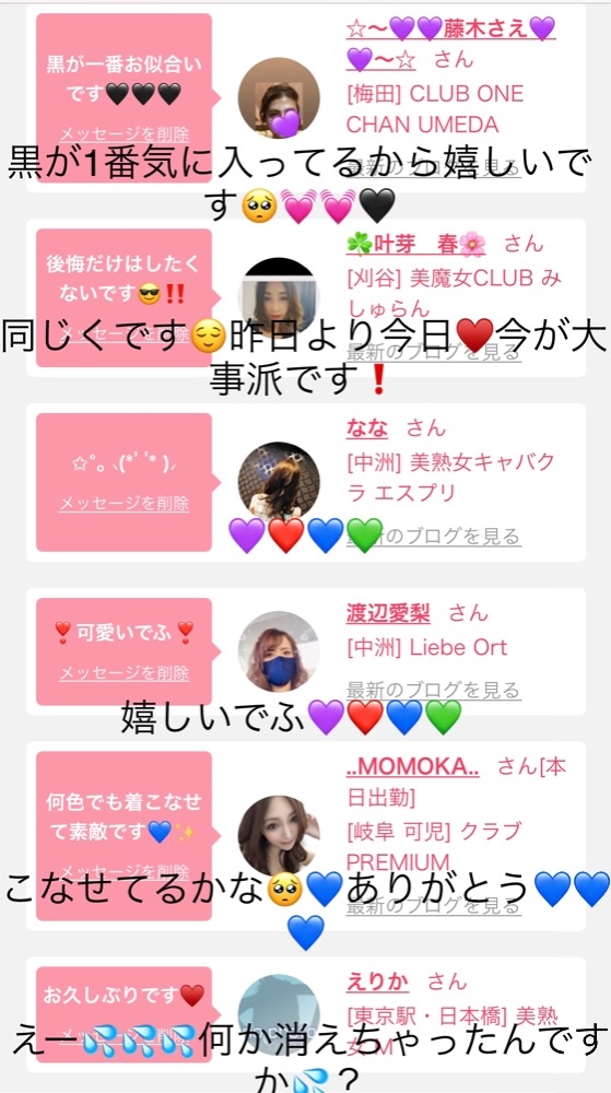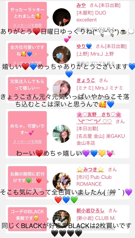 スナック寄ってから19時~出勤します(*´ω`*) ご連絡助かります💜❤💙💚