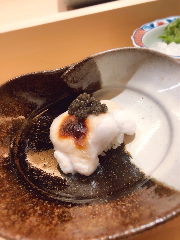 白子キャビア乗せ鮨(はい!めっちゃ美味しいビビる!言いたいけど深イイ話中)
