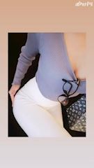 アイスブルーのトップスに白パンツ💙