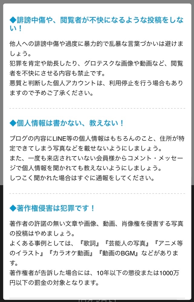今日からブログについて注意事項が書く側に強く表示されましたね❗️