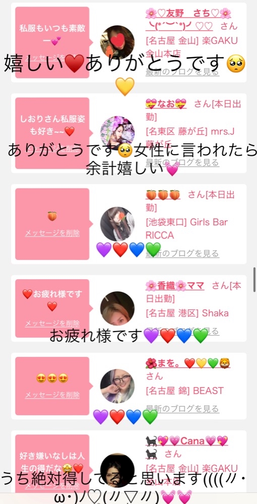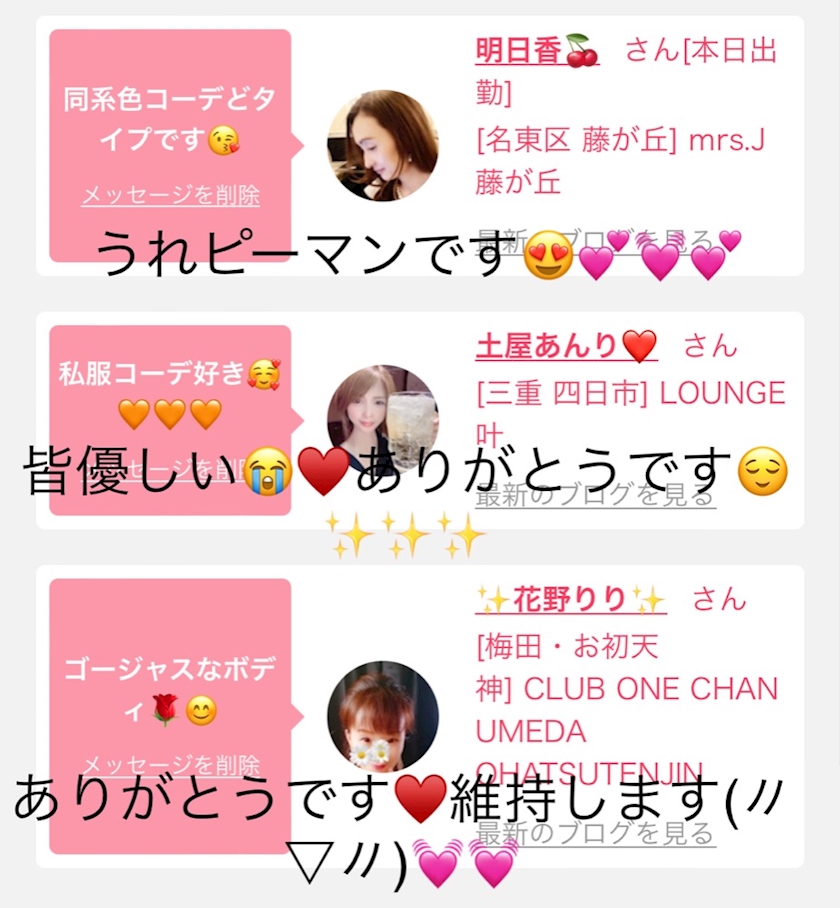 『さっきの子とても話しやすかったよ』とかばかりです♥️