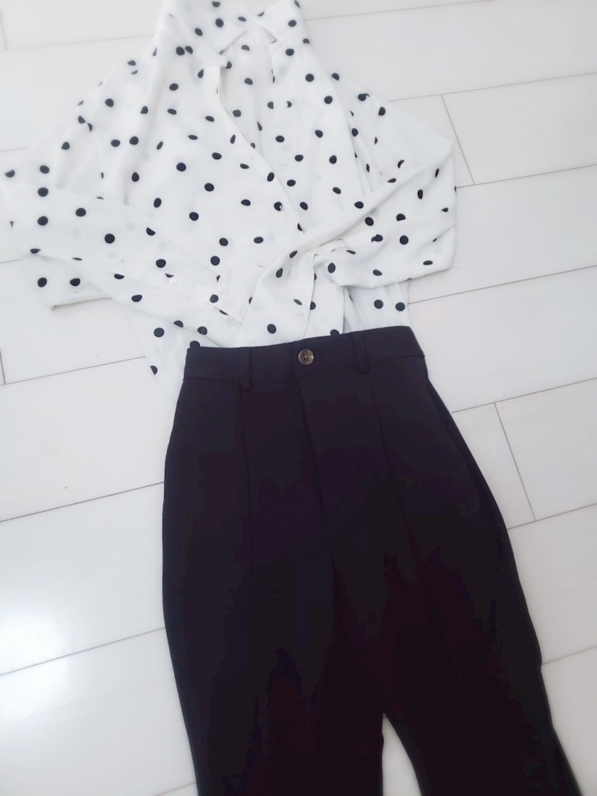 黒となら引き締まって水玉も大人可愛いに見えません?🖤🤍